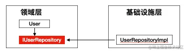 改进后,他们后依赖于IUserRepository的抽象,抽象由基础层去实现,领域层并不关心如何实现。