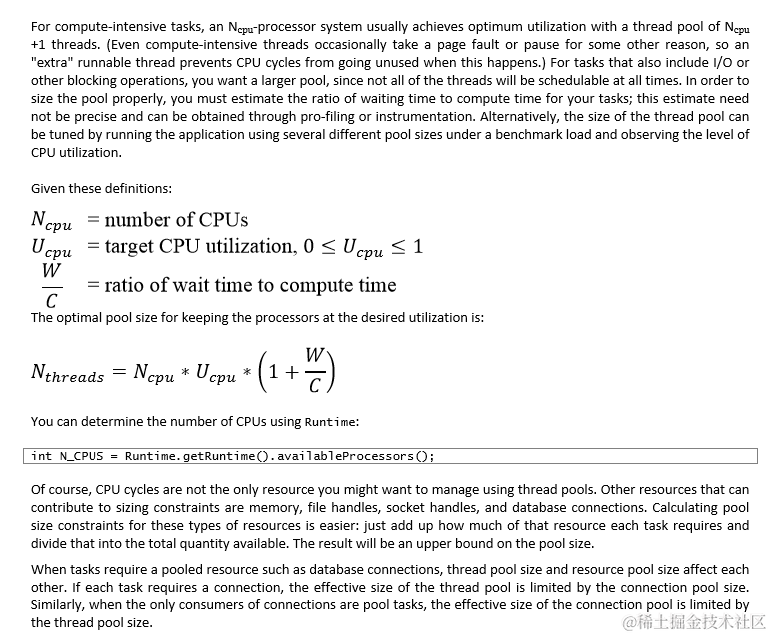 如上图,在《Java Concurrency in Practice》一书中,给出了估算线程池大小的公式: