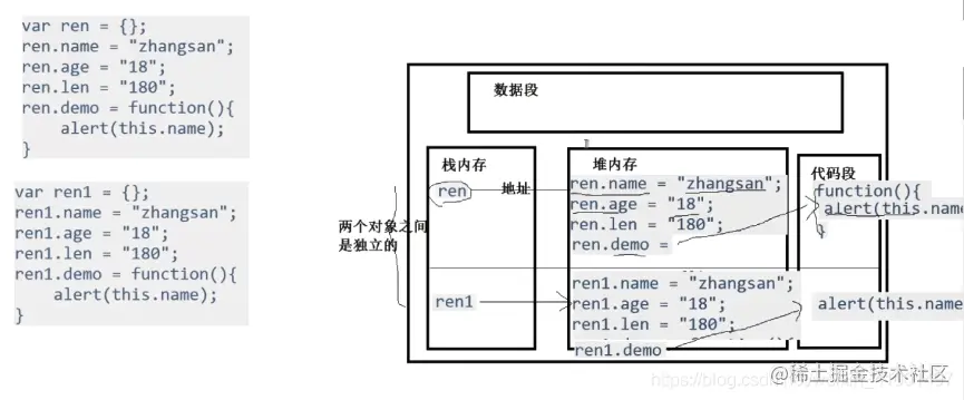 上述例子中,person.name仍然是xm,因为调用函数传参时,传的是地址值,此时相当于persno=obj,形参obj与person拥有相同的地址,指向堆内存中同一块内存,obj.name='xm'相当于person.name='xm'。 当obj={}时,表明新申请了一块内存,并把这块内存的地址赋给了形参obj,这时候obj与person不再指向同一块内存单元,再对obj进行赋值,就不会对person产生影响了。