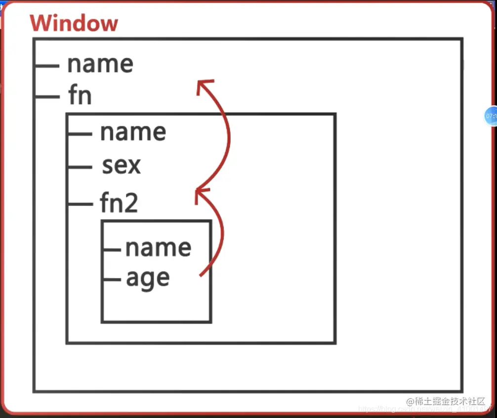 score=44; //person.score没有找到,沿着作用域链到外层去找score变量