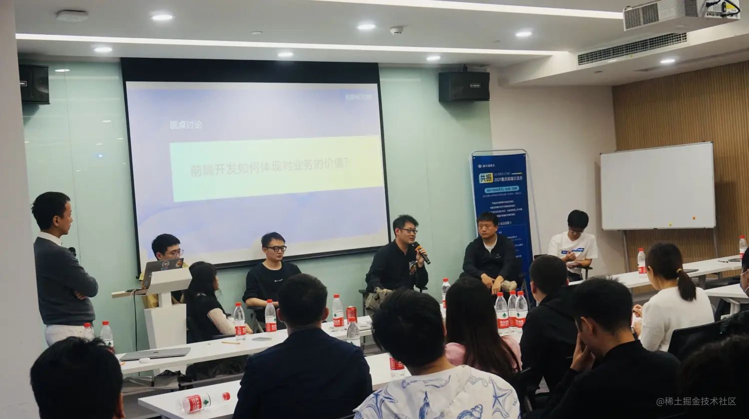相信每位前端开发者都曾因为做不完的需求和改不完的bug头疼过,或许曾为每天撸业务代码,是否能获得技术成长而发愁过。因此我们在本次活动中设计了主题为**《前端开发如何体现对业务的价值》的圆桌论坛,将业务和前端关联起来讨论,探讨业务发展的不同时期,前端所能做的一些事情,既能解业务的困扰,也让前端同学们摆脱码农、切图仔的定位。我们特意邀请了懂车帝前端北京团队负责人邓希、懂车帝团队前端技术专家段瑜斌、腾讯云高级开发工程师张毅、蚂蚁消费金融前端(RichLab)负责人王卓(完颜)、蚂蚁财富前端架构师洪日(恒楼)、蚂蚁集团前端技术专家陈智浩(齐穹)**共6位前端领域专家一起探讨。
