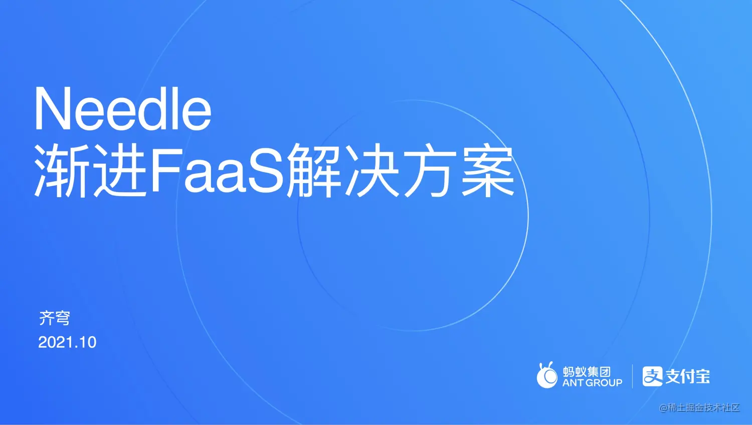 第二场分享是由陈智浩(齐穹)老师为我们带来的《Needle - Node.js渐进式Faas解决方案》。陈智浩老师是蚂蚁集团前端技术专家,同时也是Needle Stack发起人,现就职于蚂蚁保险体验技术团队,负责Node和端智能架构设计。