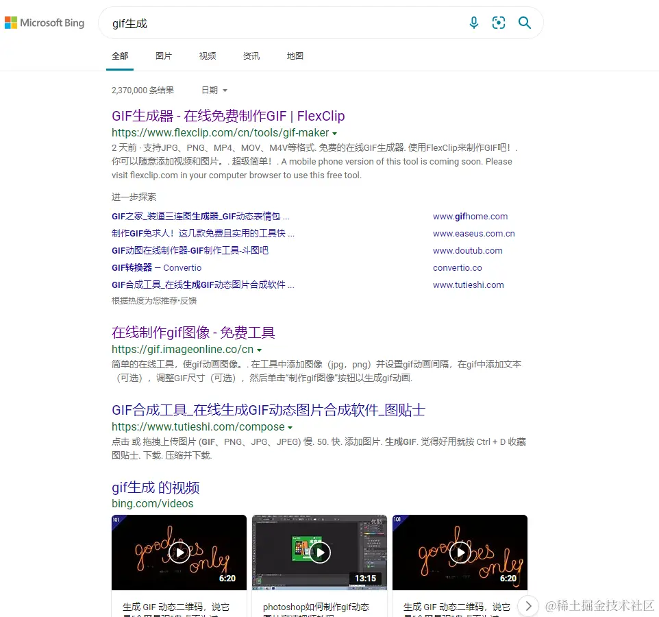 我打开浏览器搜索,输入关键词“gif生成”,下面出来一堆结果。