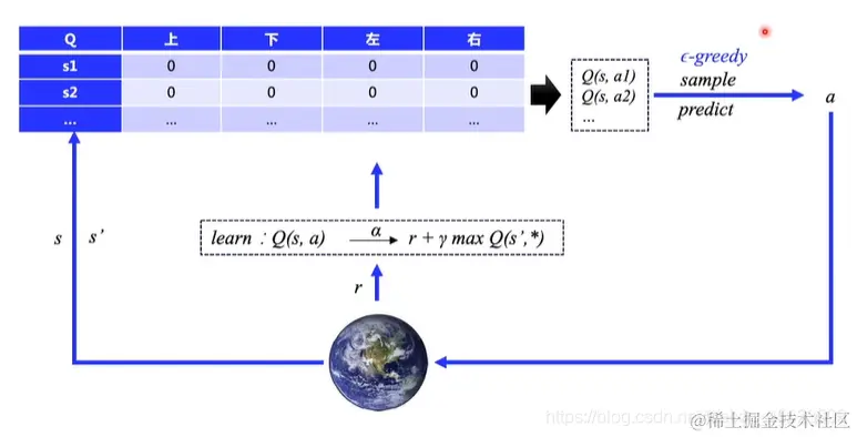 通过环境去查找Q表格获取一个R值进行输出,然后通过输出修改Q表格,同时进行探索不断完善Q表格。使得Q表格更加完善。