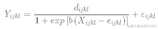 每个小区都有重复测量,因此,模型参数可能显示出一些变化,取决于基因型、氮水平、区块和小区。特别是,假设b是相当恒定的,并且独立于上述因素,而d和e可能根据以下公式发生变化,这是可以接受的。