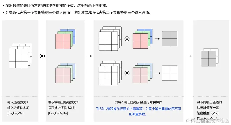 通过多个卷积核得到多个特征然后再堆叠得到一个多通道的输出
