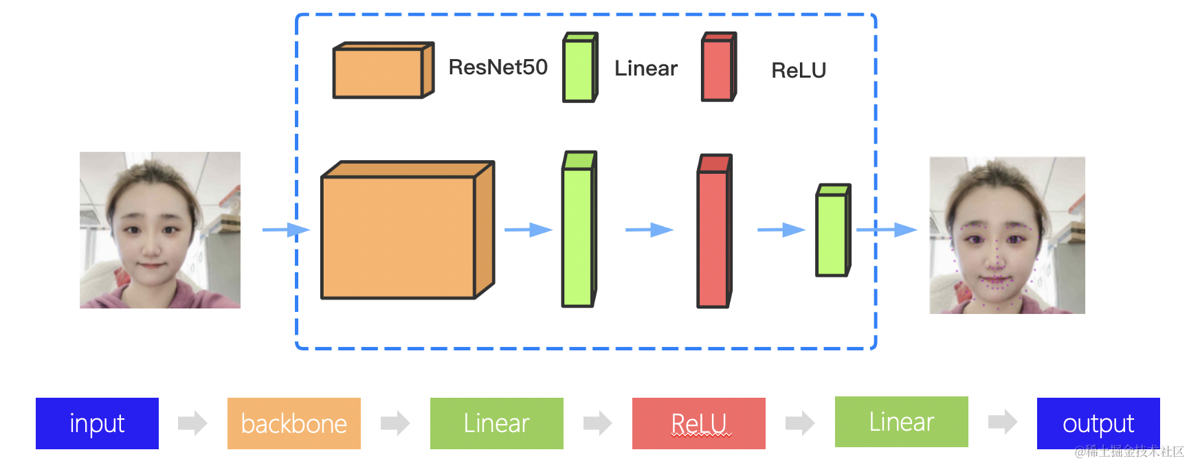 关键点识别和分类的区别嘛:应该还是很大的,分类只要识别是什么类型的得到一个大概的位置即可,但是回归问题在处理完这些以后要定性,确定到那个位置,一个是区域性质的一个是固定的点,这个难度可想而知。