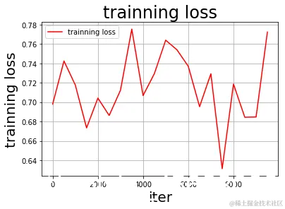 draw_process("trainning loss","red",Iters,total_loss,"trainning loss") # 画处loss图
