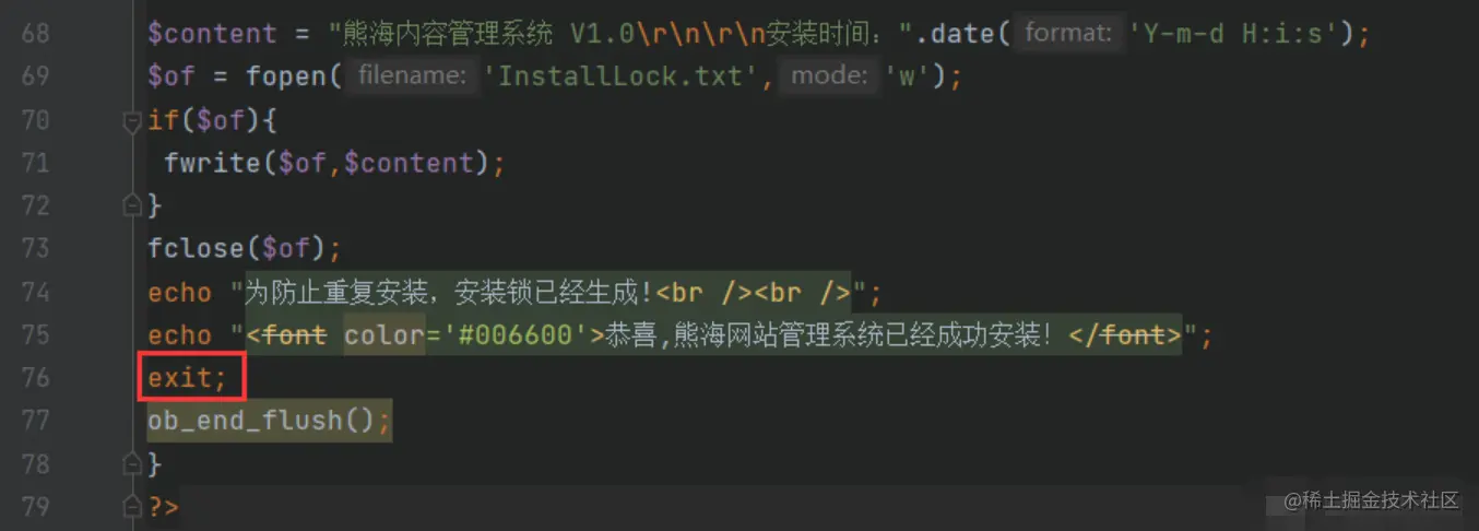 lock文件,如果存在lock文件,就会header到index.php,但是header后并没有exit,所以 并不会退出,类似的还有javascript弹个框 -
