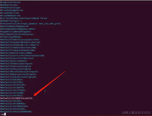 最后再输入vi /etc/systemd/system.comf做如下配置,保存并重启服务器: