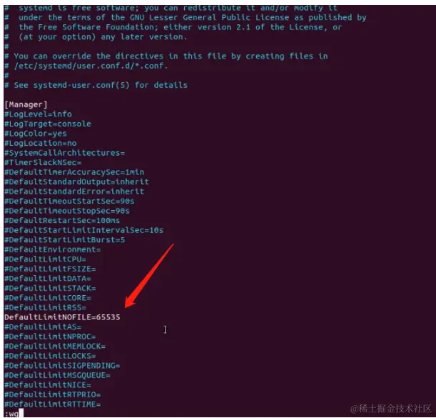 随后输入命令 vi /etc/systemd/user.conf,再做如下配置,并保存: