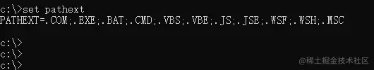 使用 set pathext 可以查看 pathext 这个环境变量,他定义了可以作为可执行文件的后缀。