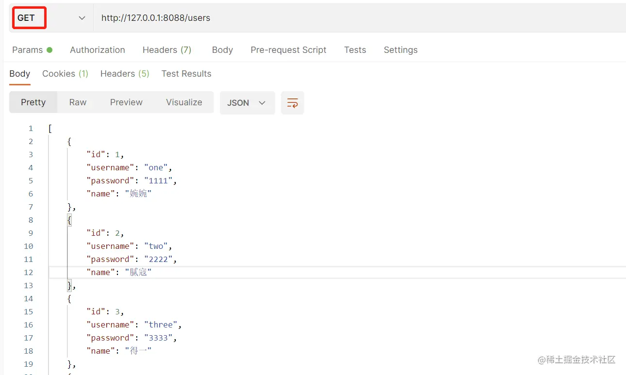 { "id": 999, "name": "九儿", "username": "nine", "password": "123" }