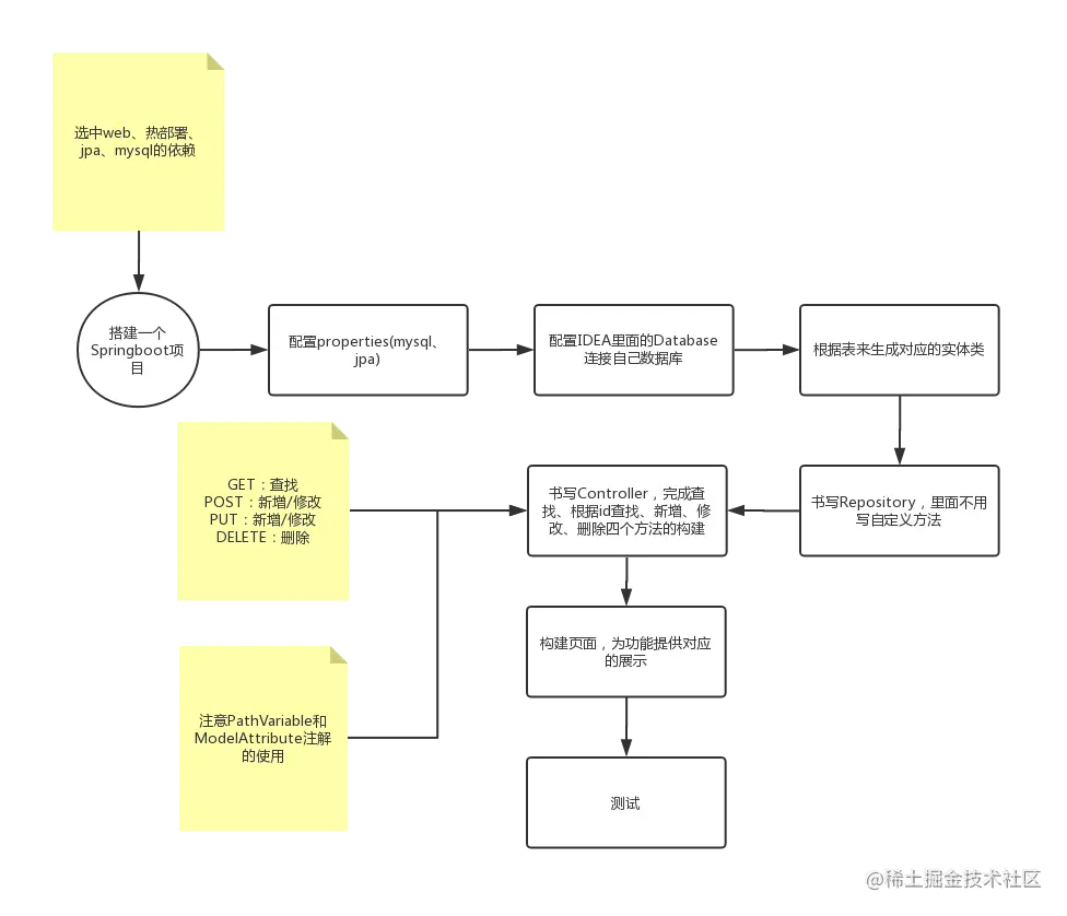SpringBoot下进行RESTful 的开发流程图