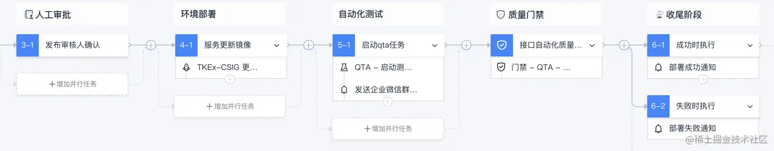 在 CD 阶段:通过引入人工审批和自动化拨测,提高服务稳定性。