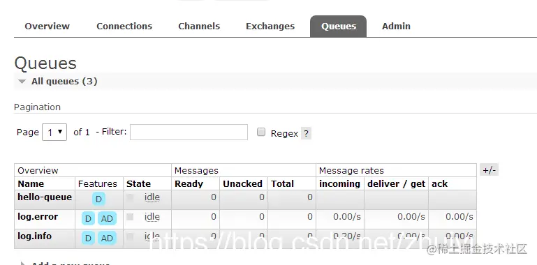 RabbitMQ 后台显示