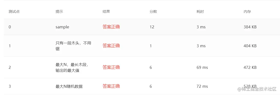 但是农夫自己没有锯子,请人锯木的酬金跟这段木头的长度成正比。为简单起见,不妨就设酬金等于所锯木头的长度。例如,要将长度为20的木头锯成长度为8、7和5的三段,第一次锯木头花费20,将木头锯成12和8;第二次锯木头花费12,将长度为12的木头锯成7和5,总花费为32。如果第一次将木头锯成15和5,则第二次锯木头花费15,总花费为35(大于32)。