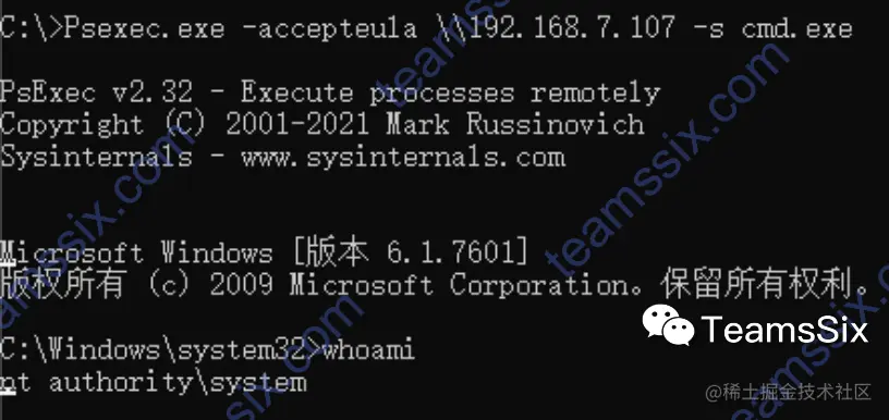 Psexec.exe -accepteula \\192.168.7.107 -s cmd.exe