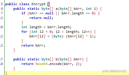 这里的代码很简单,大概解读一下,就是传入byte数组,将数组中的每一个成员位异或的结果用Base64编码