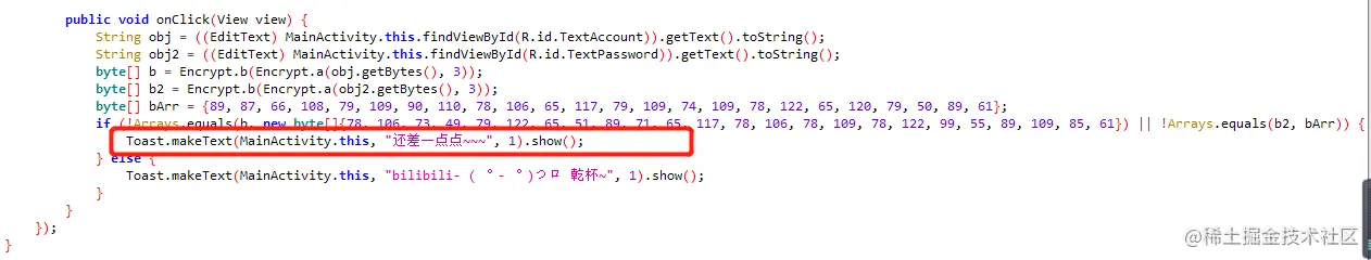 这里可以看到b和b2都是输入框输入的值,经过Encrypt.a和Encrypt.b之后的结果,和bArr以及逻辑中给的数组对比