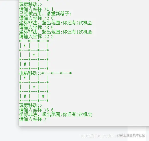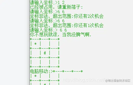 玩家移动,为了体现自己的价值,所以先手永远都是给玩家先走,诶我可以给电脑走可是就不给,就是玩。为了方便视觉观察,玩家移动电脑移动都用汉字提示