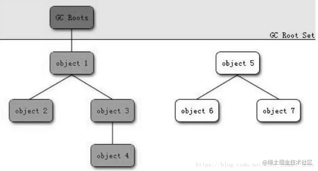 就拿上图来说吧,如果采用的是引用计数算法,则object1-7对象均不会被回收,若采用的是可达性分析算法,则object5-7会被回收。