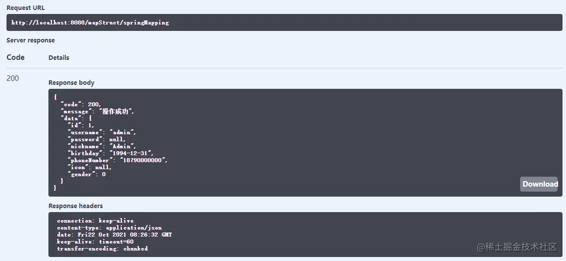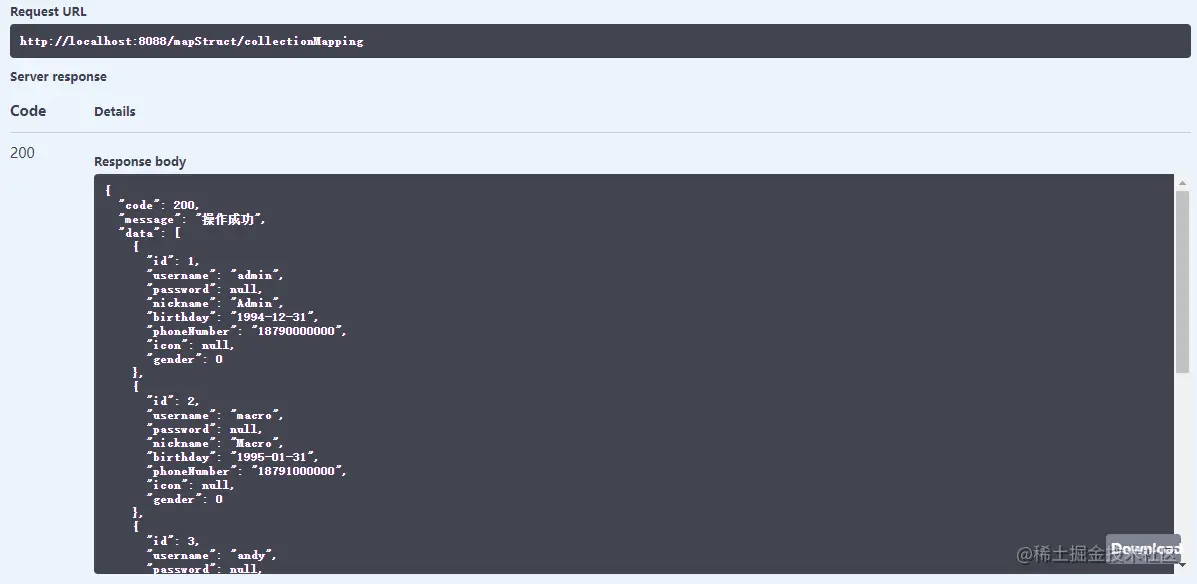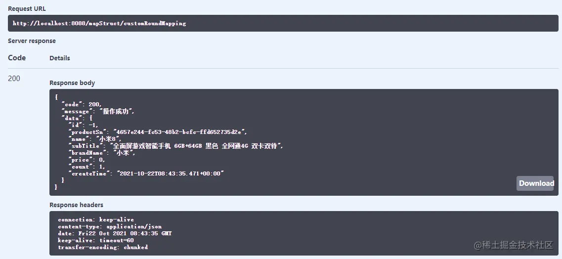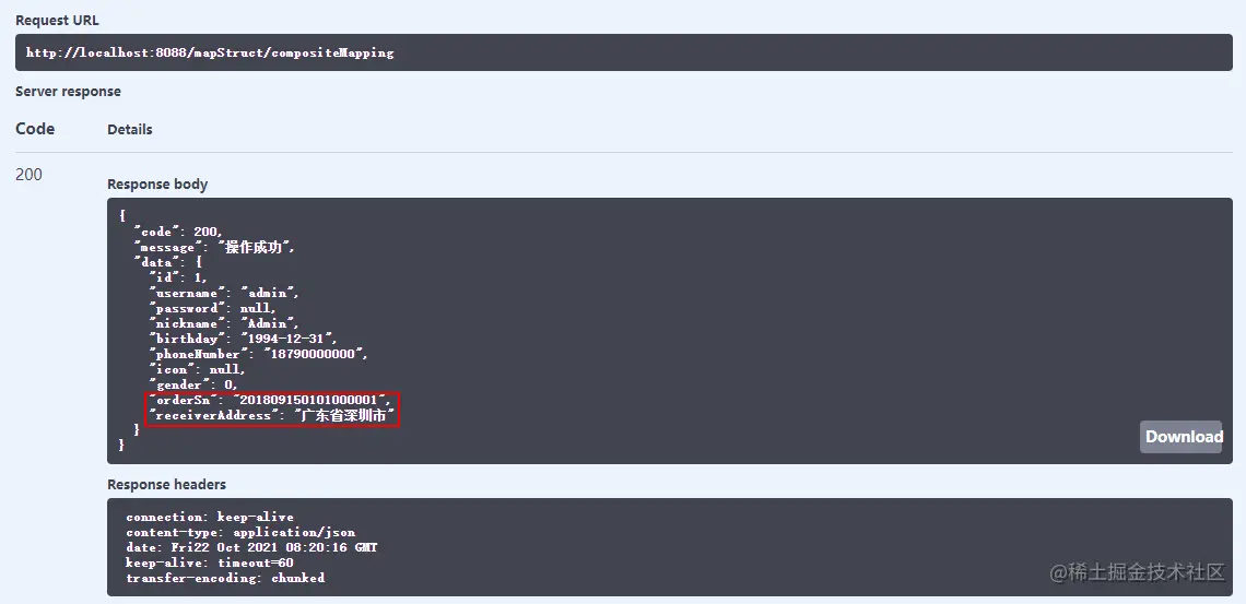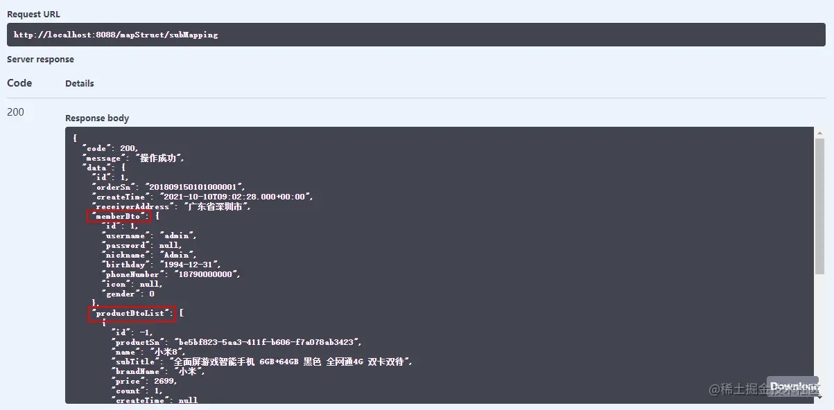 - 在Swagger中调用接口测试下,对象已经成功转换。