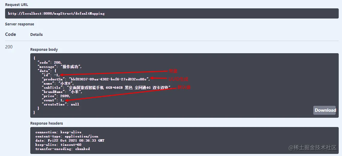 使用MapStruct映射属性时,我们可以设置属性为常量或者默认值,也可以通过Java中的方法编写表达式来自动生成属性。