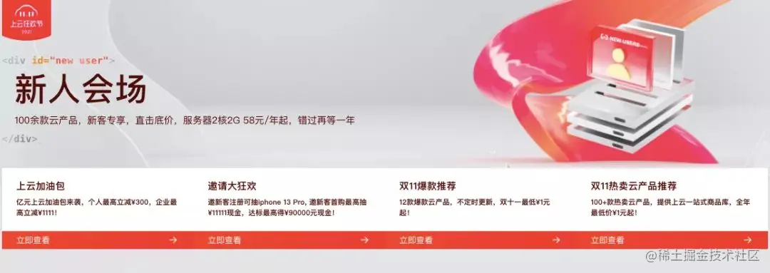 阿里云官网实名认证用户皆可参与,爆款云产品,新老用户同享全年最低价,云服务器低至5折起。
