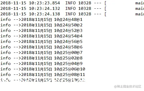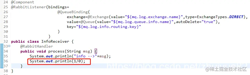 4.过一段时间后,再启动接收者项目,查看控制台,看下图可以发现数据是从36号开始。也就是说在服务器暂停的这段时间里, 从13到35号的消息都丢失了。