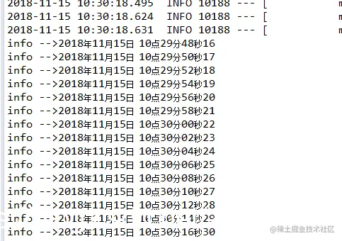 系统在10:29:46的时候停了,然后在10:30:18秒重新启动了,在系统停止期间发送的消息立即就被接收到了。