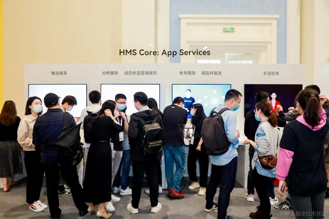 除产品大咖和合作伙伴带来的干货分享外,分析服务的互动展区更是人流如潮。开发者们可以通过一对一交流与实际互动体验,通过具体实操体验华为分析服务简单便捷的集成和强大丰富的可视化数据报表,进一步感受华为分析服务的魅力。
