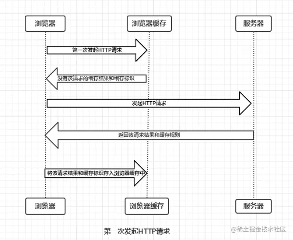浏览器第一次向服务器发起该请求后拿到请求结果,会根据响应报文中HTTP头的缓存标识,决定是否缓存结果,是则将请求结果和缓存标识存入浏览器缓存中。
