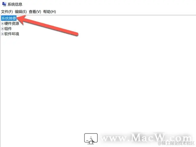 3、系统信息窗口将打开。单击 系统摘要 项。