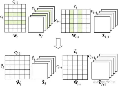 通道稀疏主要是通过裁剪网络通道数,在保持网络功能的前提下缩减模型参数量。通道稀疏的实现通常包括两个步骤:首先是通道选择,需要选择合适的通道组合以保留丰富的信息;然后是重建,需要使用选择的通道对下一层的输出进行重建。