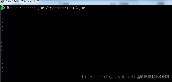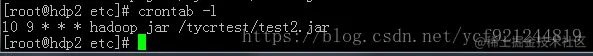 10 9 * * * hadoop jar /tycrtest/test2.jar 默认root 每天9点10执行hadoop jar /tycrtest/test2.jar 这个脚本