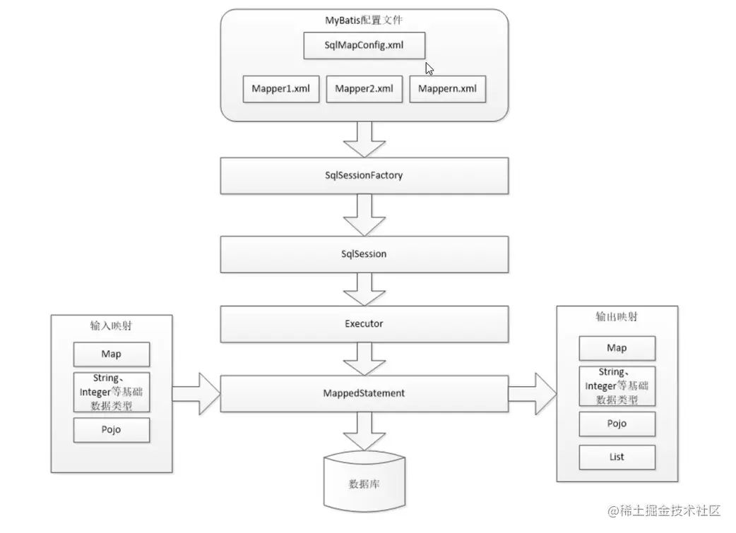 mybatis 的架构---接口层 :接口层主要定的是与数据库进行交互的方式 ,比如数据增加接口,数据删除接口,数据查询接口,数据修改接口,配置信息维护接口 接口调用方式基于statement ID 或Mapper接口,常用Mapper;