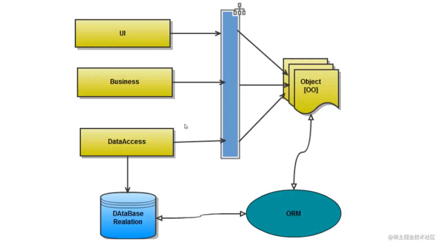 异构性 :ORM可以解决数据库与程序间的异构性,比如在java中我们使用String表示字符串,而Oracle中可使用varchar2,MYSQL中可使用varchar,SQLServer可使用nvarchar 。