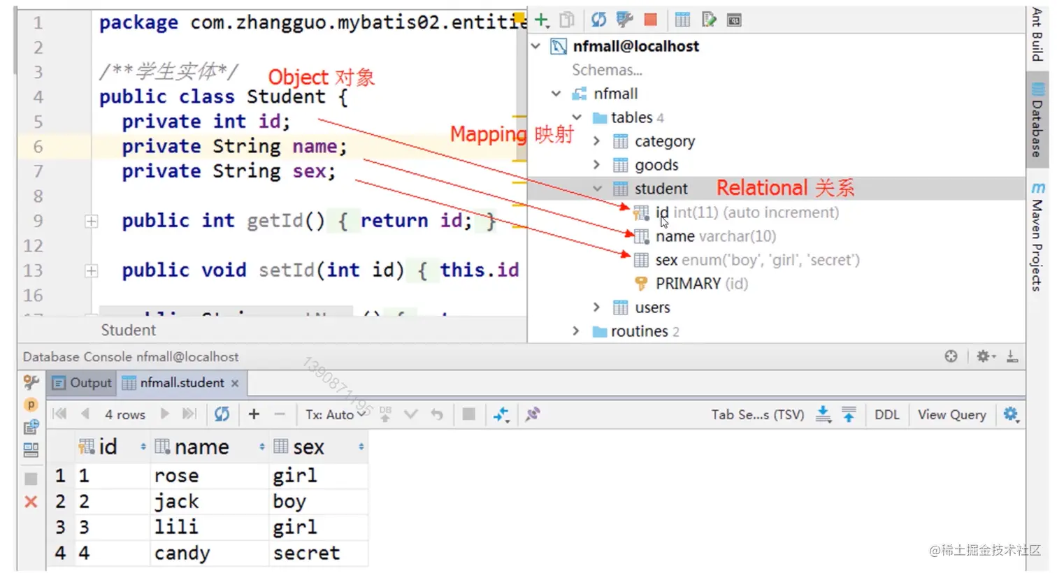 - Mybatis可以使用简单的xml或注解来配置和映射原生信息,将接口和Java的POJOs(Plain Old Java Objects ,普通的java对象)映射成数据库中的记录。