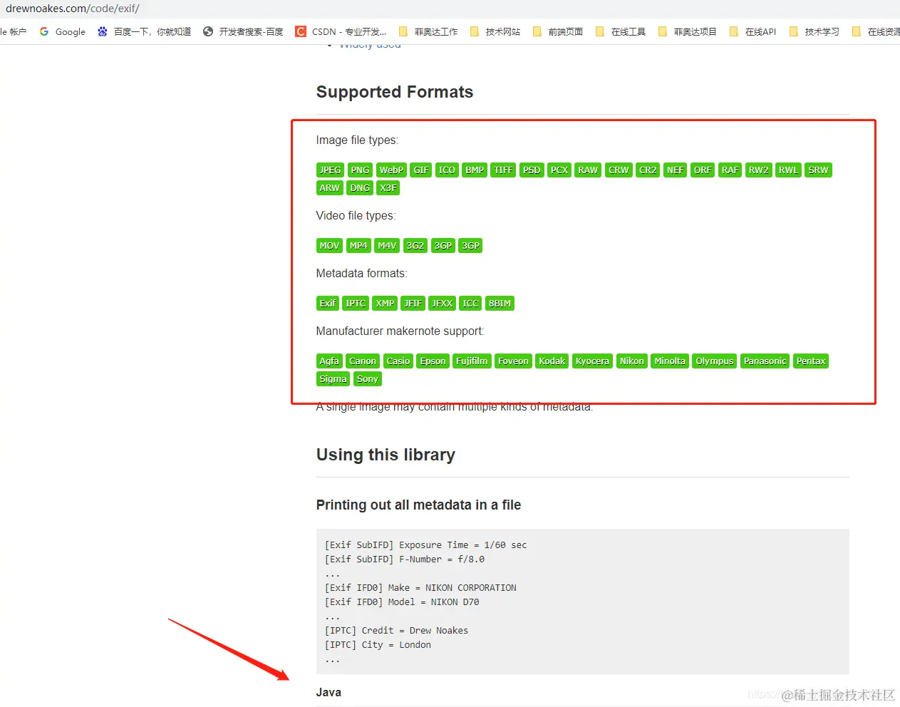从博文上看是exifread模块,找我大java的对应的jar,发现metadata-extractor,而且官方还在持续更新,最近的jar是今年的。