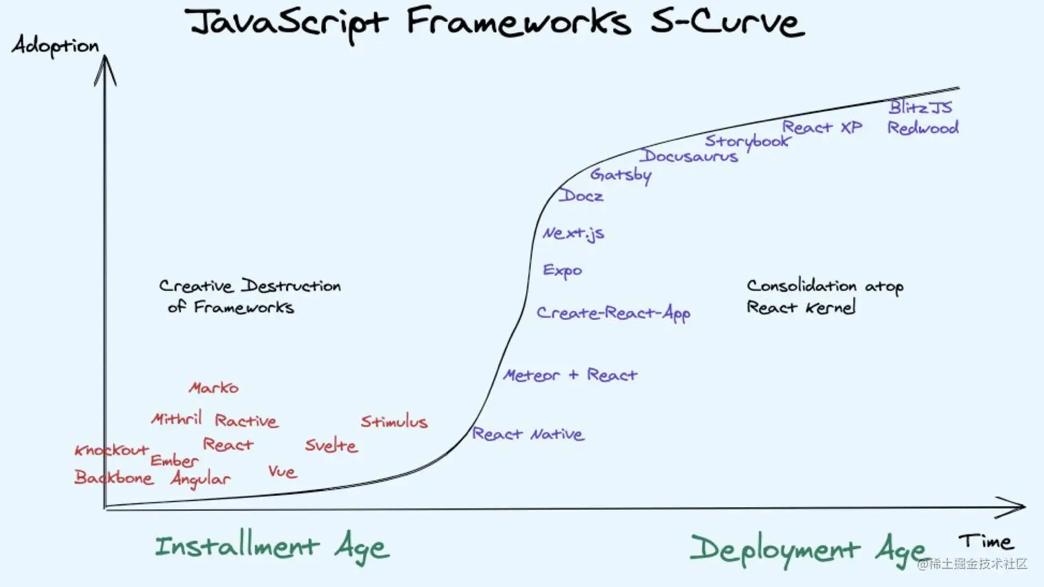 这种转变推动前端技术领域出现了「从分离到一体化」、新一代「前端三剑客」的变革。