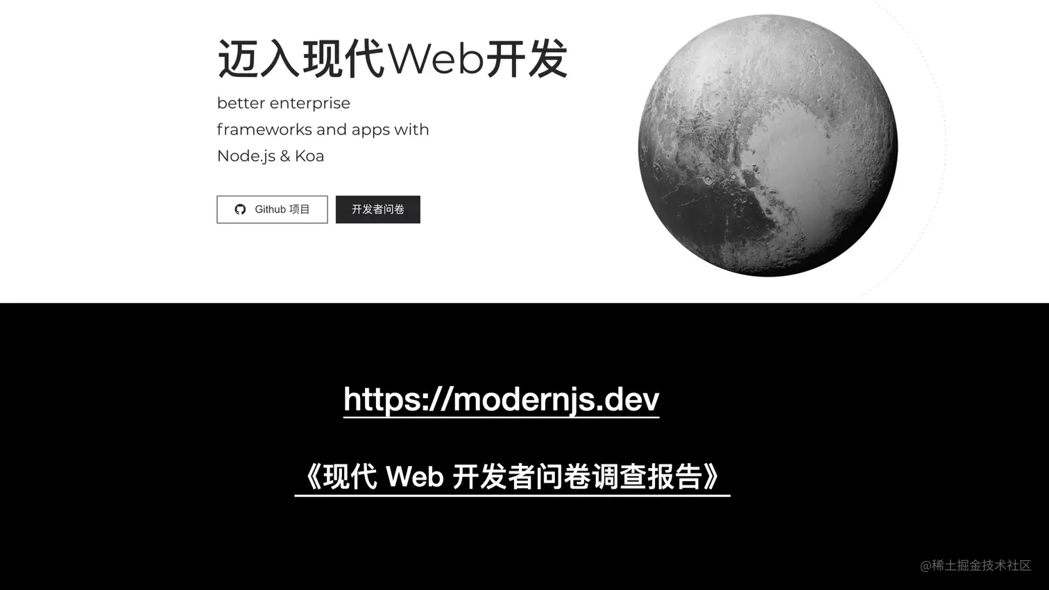 掘金大会第一天的分享介绍了 「现代 Web 研发体系」中的其他部分,这些部分也都算是 Modern.js 的重要功能,后续会陆续对外开放,欢迎大家关注。