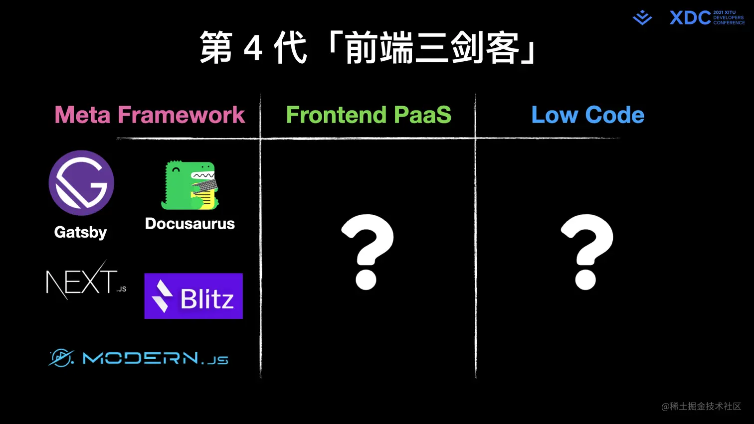 分析了四代「前端三剑客」,以及每一代都被下一代的成员「吞并」的规律,结合字节内部的真实案例,讲解了 Meta Framework 的角色。