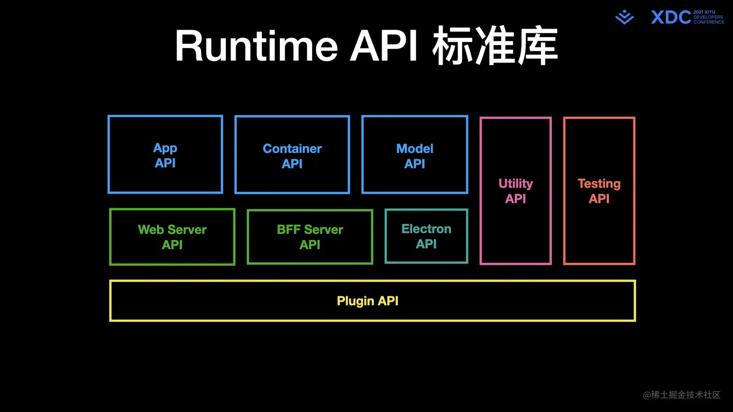 图中最上面蓝色方块是业务开发中常用的 API,比如 useLoader,useModel 等 API。中间绿色部分就是前面提到的定制 web server、BFF 函数需要用到的 API,最底层的插件 API,是整个框架的基础,框架里所有的包都是用插件 API 来实现的,也可以用插件 API 来扩展框架、定制工程方案。粉色部分包括很多重要的工具 API,比如 useLocalModel。
