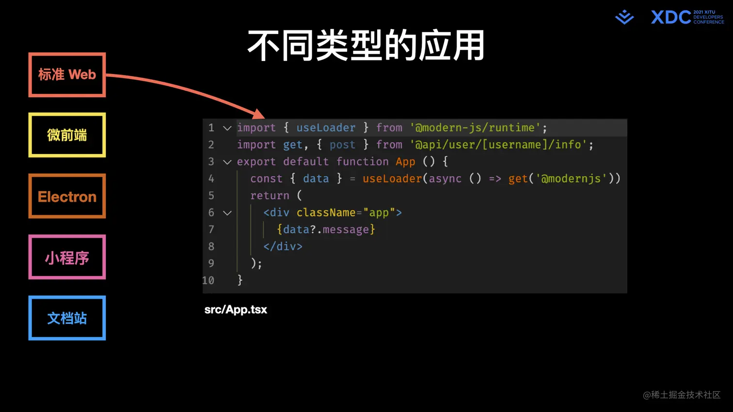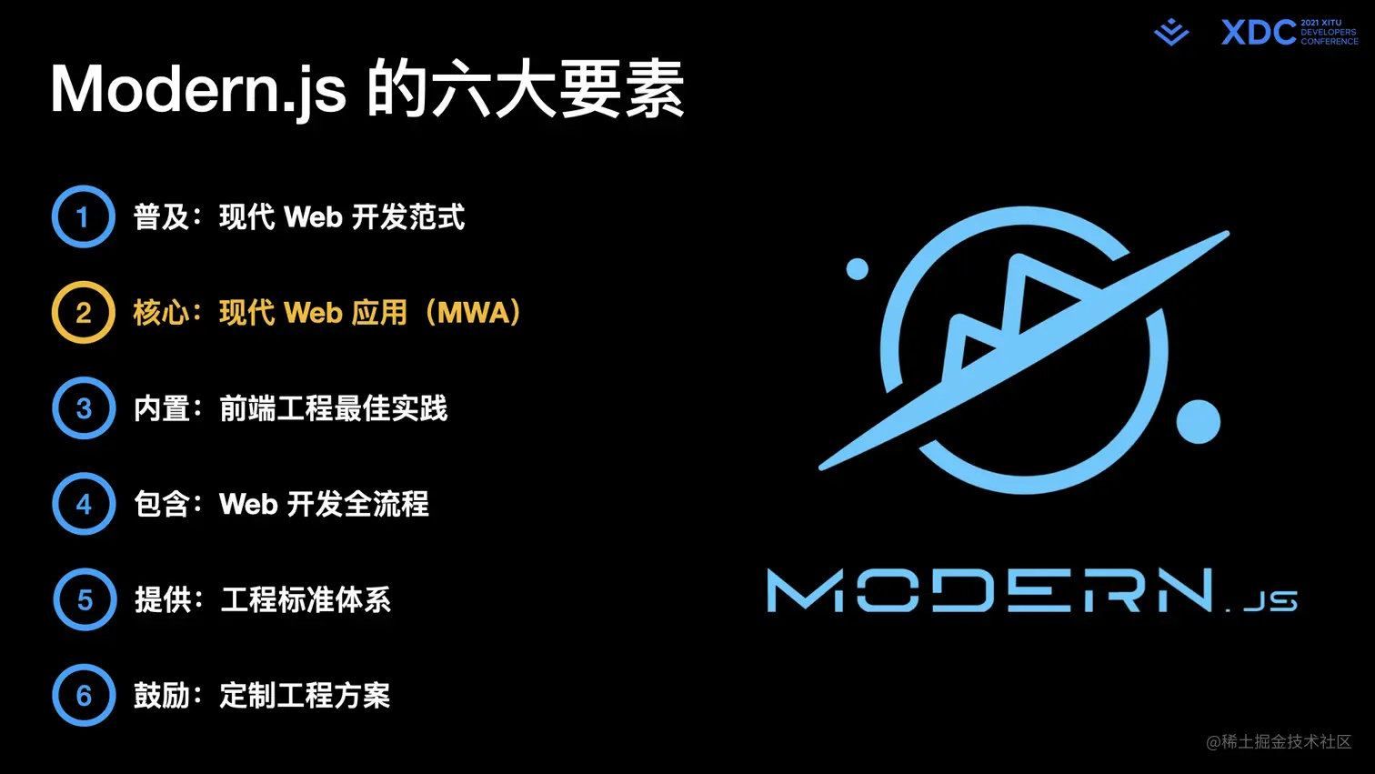 继续看第二个要素。Modern.js 三大工程类型中最核心的就是 「现代 Web 应用」,简称 MWA,或直接叫「应用」。