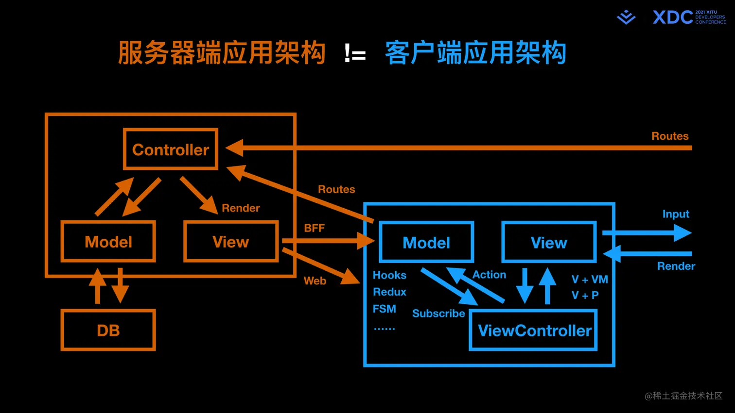 传统 Web 开发中的应用架构,等同于服务器端应用架构,前端部分的架构要么缺失,要么需要项目开发者自己摸索、搭建,缺乏 API 支持和一致的抽象,难以跨项目复用业务逻辑。