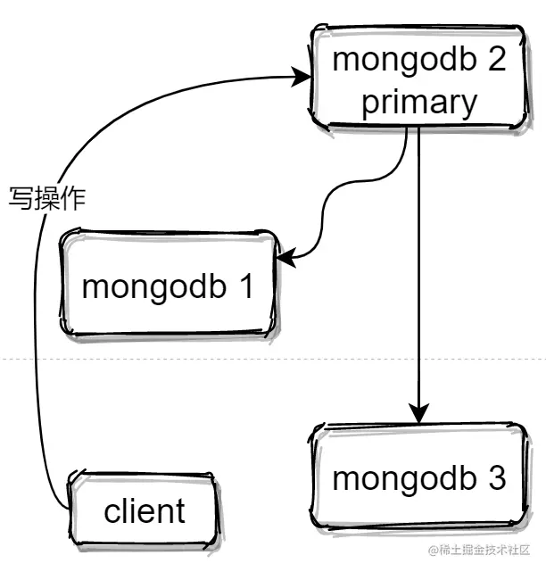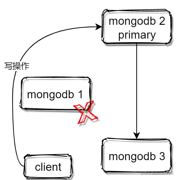 这个时候,就会通过上述的大多数选举机制来选举出一个新的主副本,暂定选中 mongodb 2