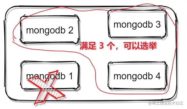 例如,有 4 个 mongodb 副本,部署在同一个环境中,则按照大多数选举机制,4/2 + 1 = 3 ,也就是说