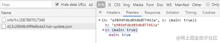 浏览器接受到最新的hotCurrentHash,触发 hotDownloadManifest 函数,获取manifest json 文件。