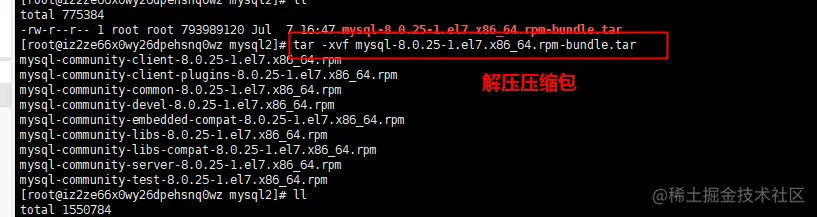 按照下面的命令顺序执行,文件名修改成你压缩后的文件名称即可